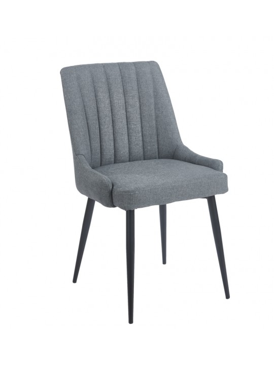 Megan καρέκλα με μεταλλικό σκελετό βαφής σε χρώμα μαύρο.Το κάθισμα είναι ενδεδυμένο από ύφασμα σε χρώμα grey.Ο σχεδιασμός της συνδυάζει το κλασικό με το μοντέρνο,δημιουργώντας ένα κομψό σύνολο για να διακοσμήσετε τον χώρο σας.