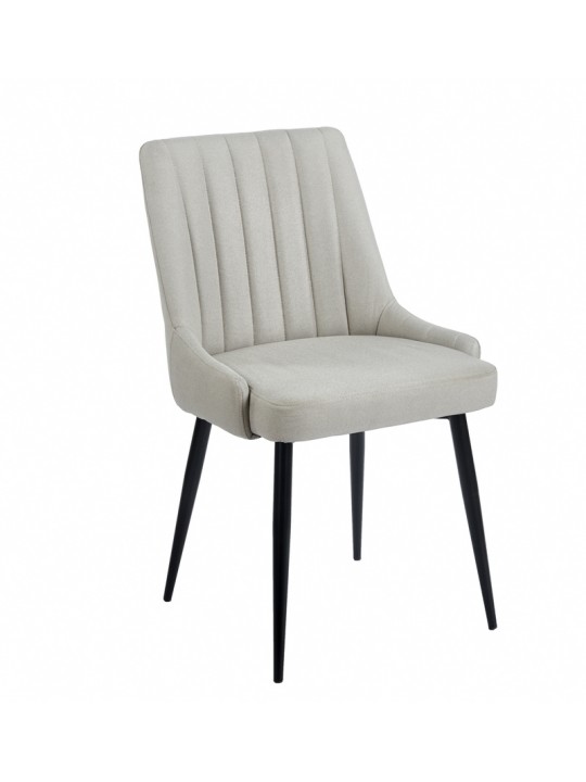 Megan καρέκλα με μεταλλικό σκελετό βαφής σε χρώμα μαύρο.Το κάθισμα είναι ενδεδυμένο από ύφασμα σε χρώμα light beige.Ο σχεδιασμός της συνδυάζει το κλασικό με το μοντέρνο,δημιουργώντας ένα κομψό σύνολο για να διακοσμήσετε τον χώρο σας.