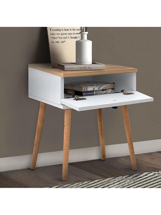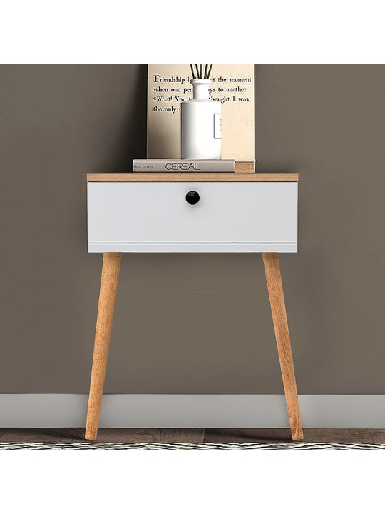 Κομοδίνο Pauline Megapap μελαμίνης χρώμα pine - λευκό 45x35x61εκ.