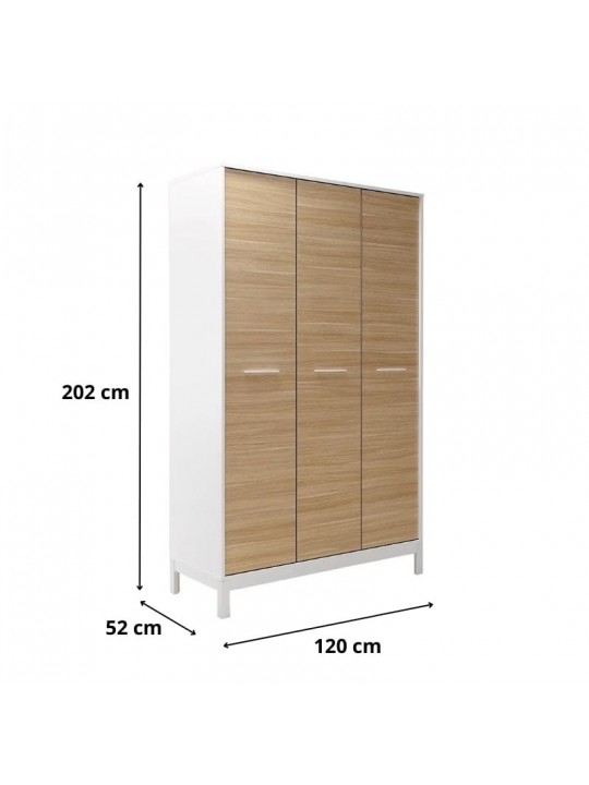 Ντουλάπα ρούχων London Megapap τρίφυλλη χρώμα oak - λευκό 120x52x202εκ.
