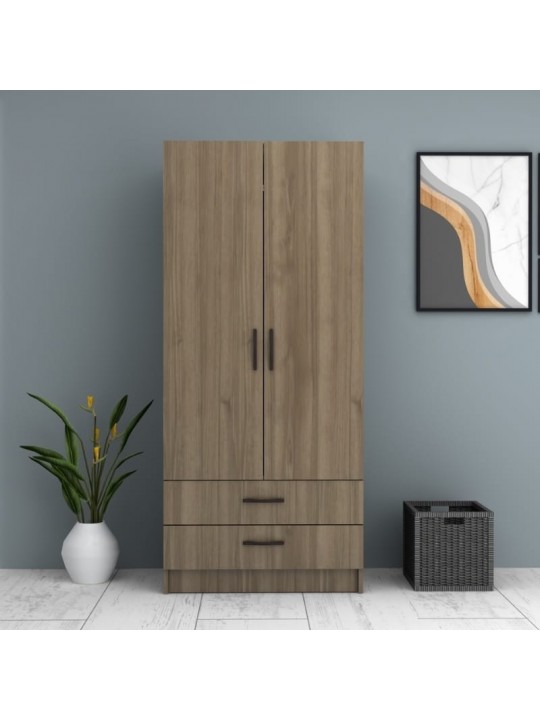 Ντουλάπα ρούχων Ricardo Megapap δίφυλλη με συρτάρια χρώμα καρυδί 80x51,8x181εκ.