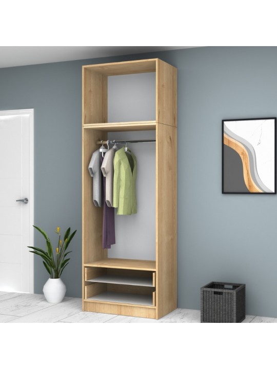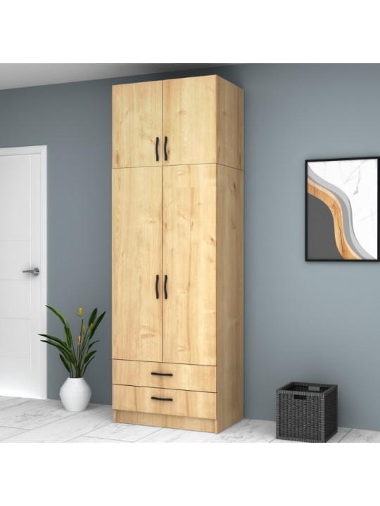 Ντουλάπα ρούχων Ricardo Megapap δίφυλλη με πατάρι και συρτάρια χρώμα φυσικό οξιάς 80x51,8x240εκ.