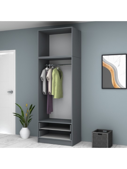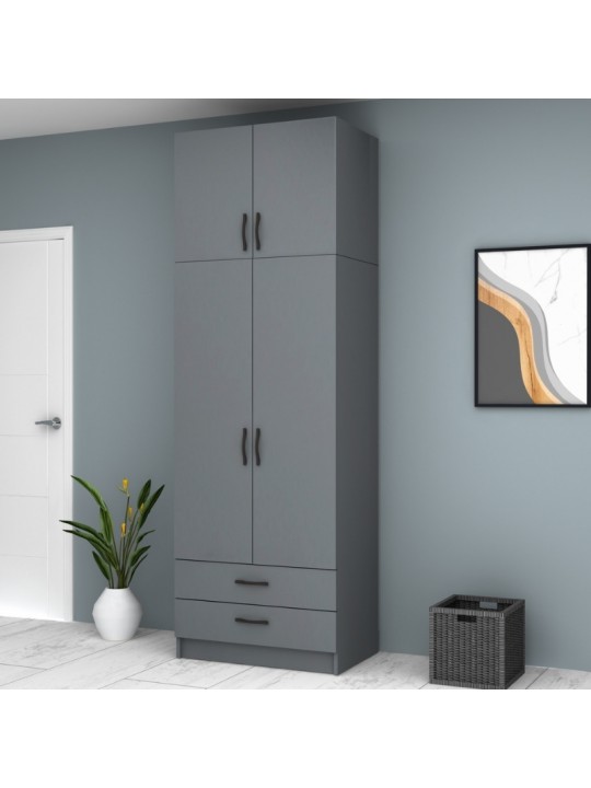 Ντουλάπα ρούχων Ricardo Megapap δίφυλλη με πατάρι και συρτάρια χρώμα ανθρακί 80x51,8x240εκ.
