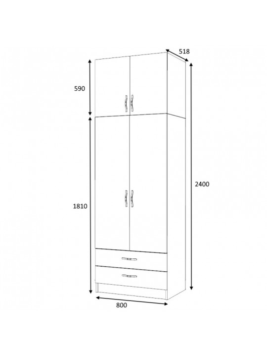 - Διαστάσεις ντουλάπας: Μήκος 80 x Βάθος 51,8 x Ύψος 181 εκ.