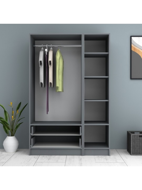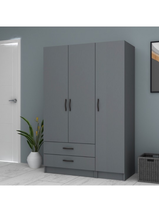 Ντουλάπα ρούχων Ricardo Megapap τρίφυλλη με συρτάρια χρώμα ανθρακί 120x61,8x181εκ.