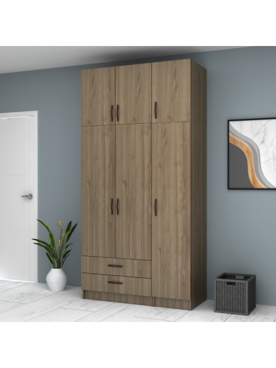 Ντουλάπα ρούχων Ricardo Megapap τρίφυλλη με πατάρι και συρτάρια χρώμα καρυδί 120x61,8x240εκ.
