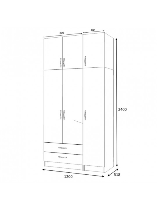 - Διαστάσεις ντουλάπας: Μήκος 120 x Βάθος 51,8 x Ύψος 240 εκ.