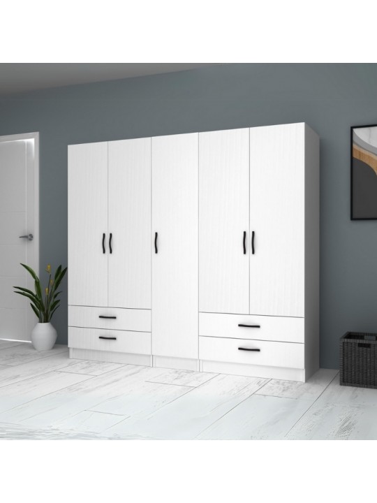Ντουλάπα ρούχων Ricardo Megapap πεντάφυλλη με συρτάρια χρώμα λευκό 200x51,8x181εκ.