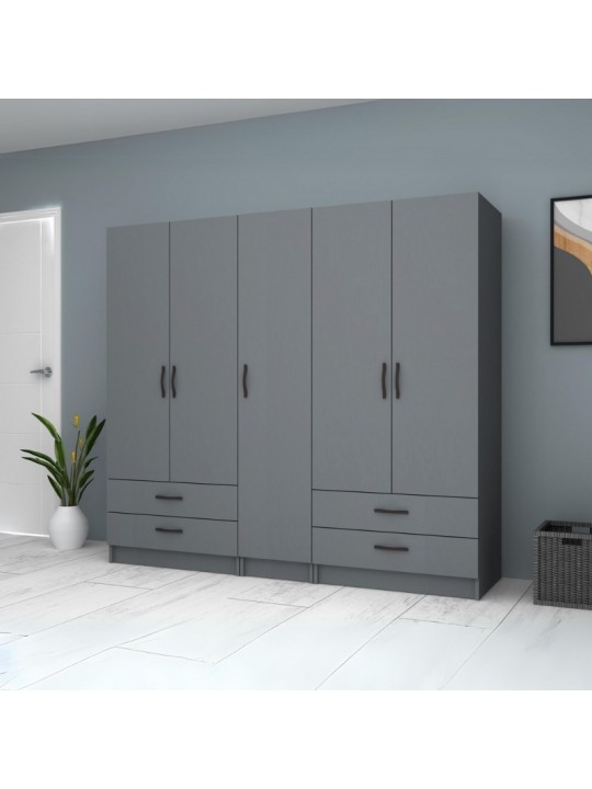 Ντουλάπα ρούχων Ricardo Megapap πεντάφυλλη με συρτάρια χρώμα ανθρακί 200x61,8x181εκ.