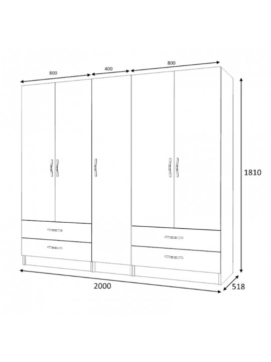 • Διαστάσεις ντουλάπας: Μήκος 200 x Βάθος 51,8 x Ύψος 181 εκ.