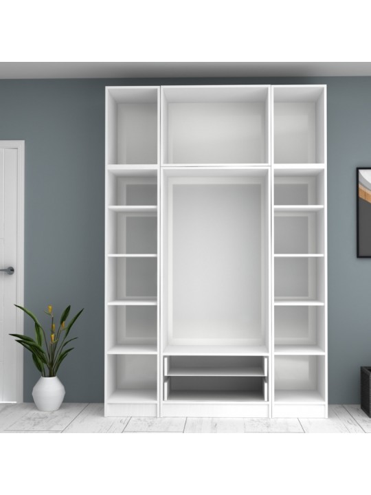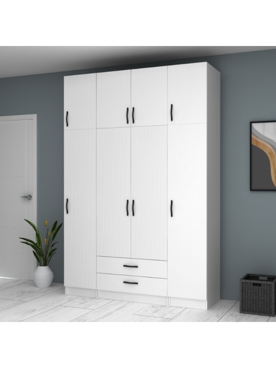 Ντουλάπα ρούχων Ricardo Megapap τετράφυλλη με πατάρι και συρτάρια χρώμα λευκό 160x61,8x240εκ.
