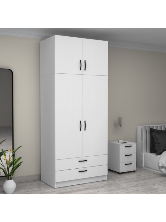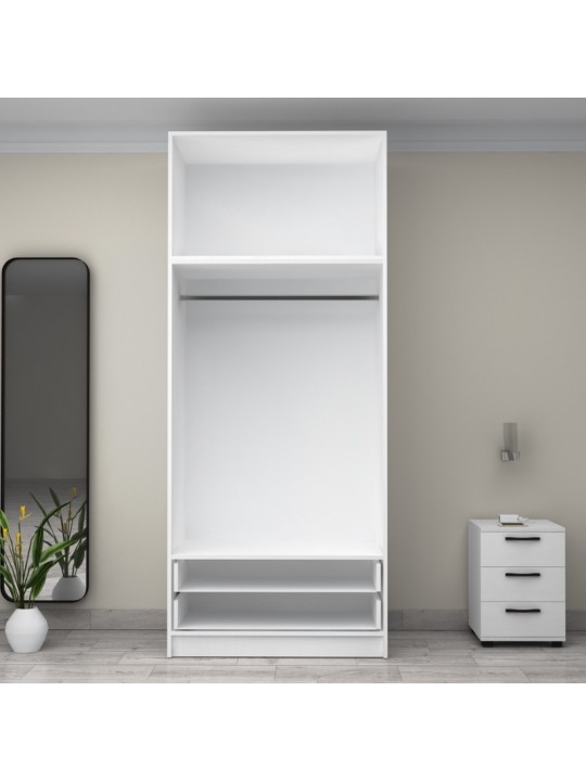 Ντουλάπα ρούχων Victoria Megapap δίφυλλη με πατάρι και συρτάρια χρώμα λευκό 100x60x240εκ.