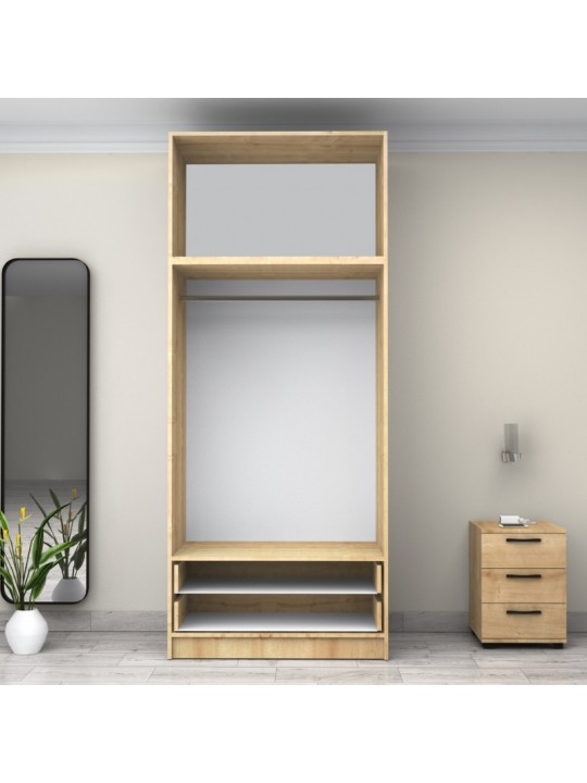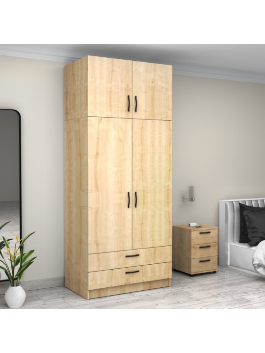 Ντουλάπα ρούχων Victoria Megapap δίφυλλη με πατάρι και συρτάρια χρώμα φυσικό οξιάς 100x60x240εκ.