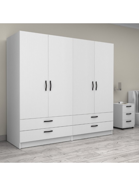 Ντουλάπα ρούχων Victoria Megapap τετράφυλλη με συρτάρια χρώμα λευκό 200x60x181εκ.