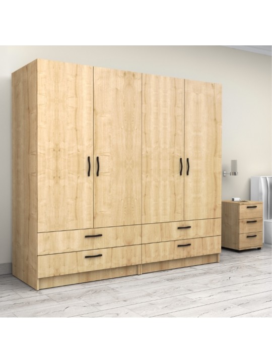 Ντουλάπα ρούχων Victoria Megapap τετράφυλλη με συρτάρια χρώμα φυσικό οξιάς 200x60x181εκ.