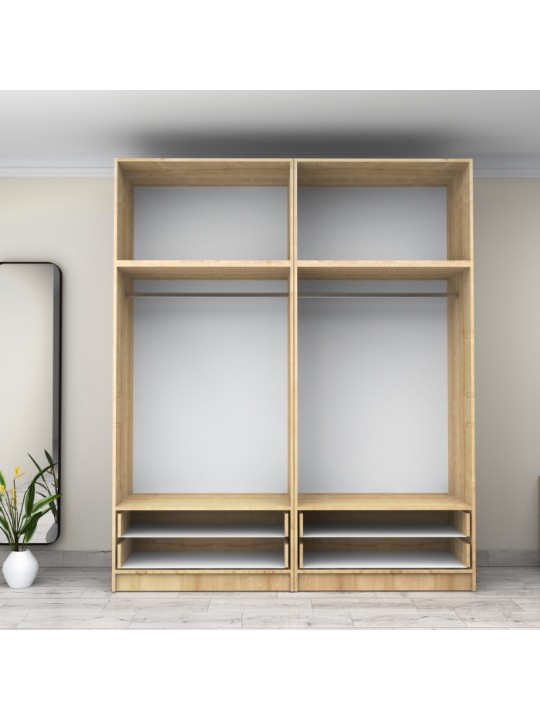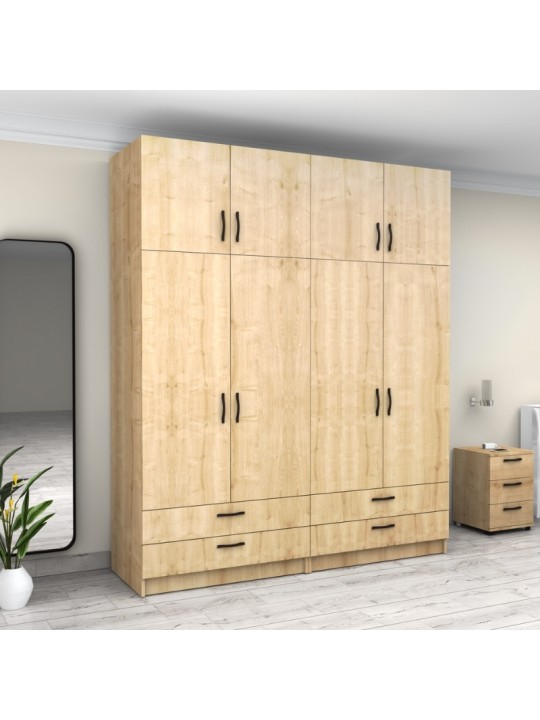 Ντουλάπα ρούχων Victoria Megapap τετράφυλλη με πατάρι και συρτάρια χρώμα φυσικό οξιάς 200x60x240εκ.