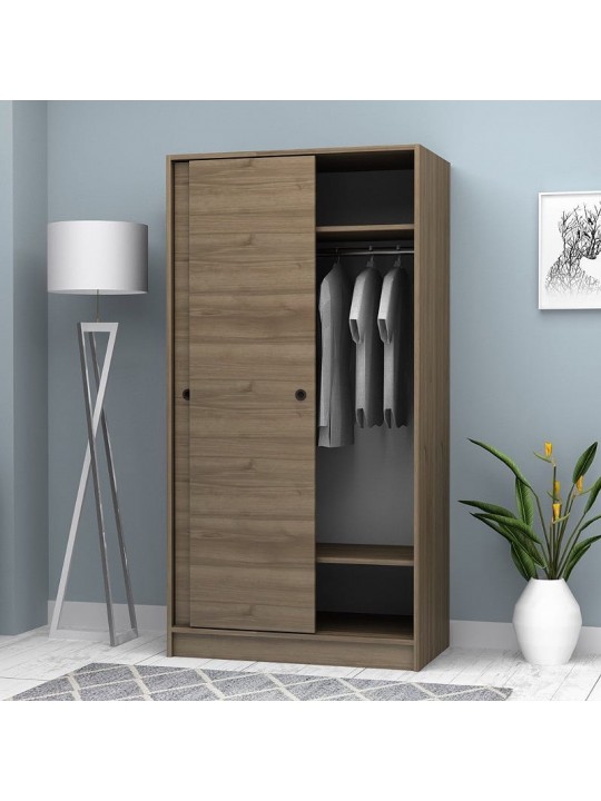 Ντουλάπα ρούχων Misra Megapap δίφυλλη συρόμενη από μελαμίνη χρώμα καρυδί 94x52x182εκ.