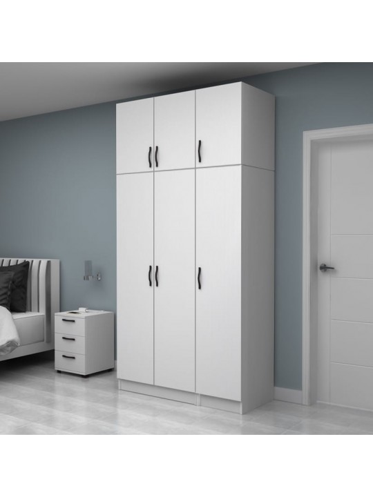 Ντουλάπα ρούχων Vivian Megapap τρίφυλλη με πατάρι χρώμα λευκό 120x51,8x240εκ.