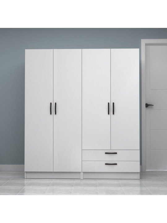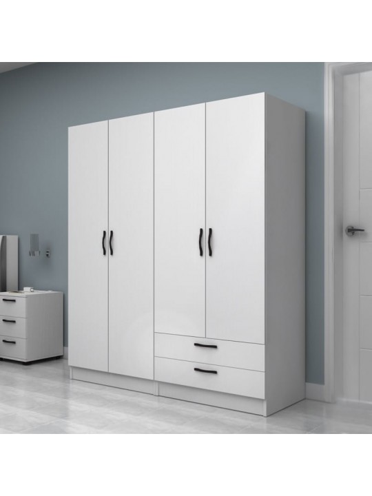 Ντουλάπα ρούχων Vivian Megapap τετράφυλλη με συρτάρια χρώμα λευκό 160x51,8x181εκ.