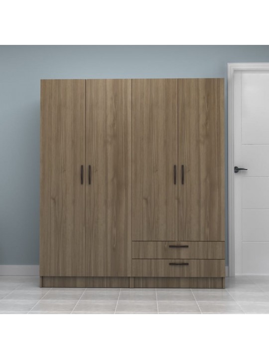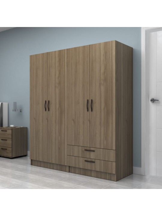 Ντουλάπα ρούχων Vivian Megapap τετράφυλλη με συρτάρια χρώμα καρυδί 160x51.8x181εκ.