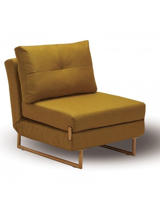 Sara S πολυθρόνα με ύφασμα χρώματος μουσταρδί και μεταλλικά πόδια βαφής σε φυσικό χρώμα.Με ιδιαίτερο design που θα δώσει μια άριστη κομψότητα στον χώρο σας.Σας δίνει την δυνατότητα ανοίγοντας τα φερμουαρ που έχει στην κάτω πλευρά του να ανοίγεται τα πόδια και να μετατρέπεται εύκολα σε κρεβάτι.