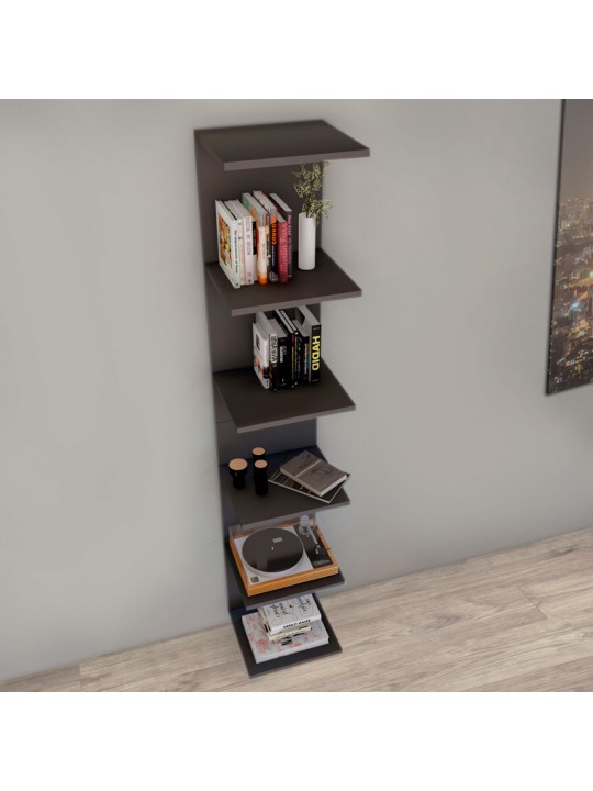 Βιβλιοθήκη - Ραφιέρα τοίχου μελαμίνης Ogden Megapap χρώμα ανθρακί 34,5x30x180εκ.
