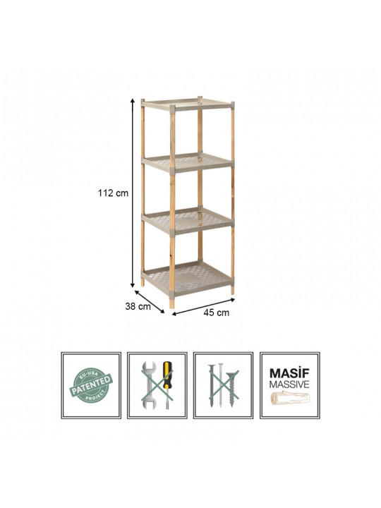 Ραφιέρα δαπέδου πλαστική - ξύλινη χρώμα φυσικό - μπεζ 45x38x112εκ.