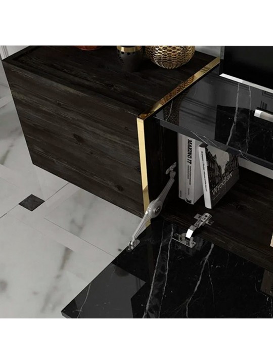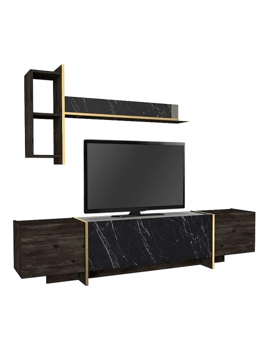 Σύνθεση τηλεόρασης Veyron Megapap από μελαμίνη χρώμα μαύρο rebab - μαύρο εφέ μαρμάρου 180x33x45εκ.
