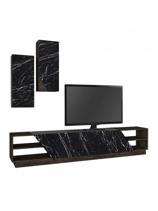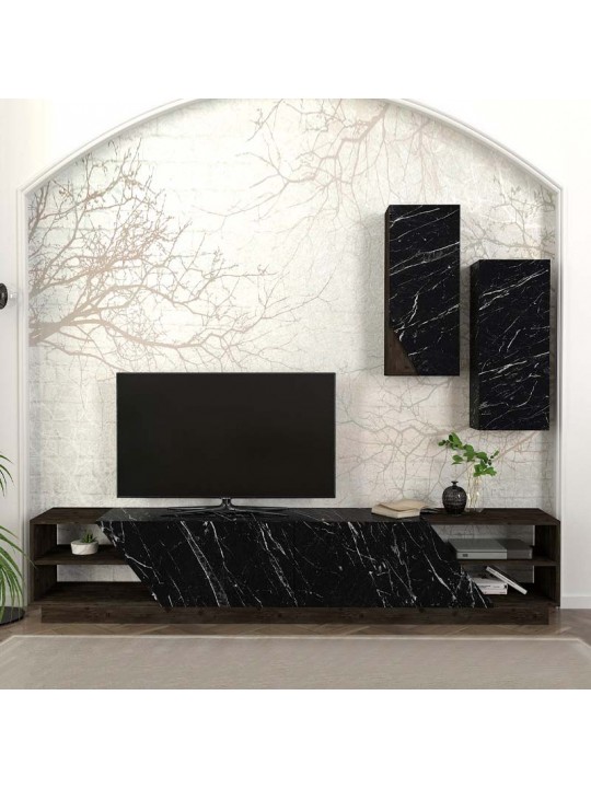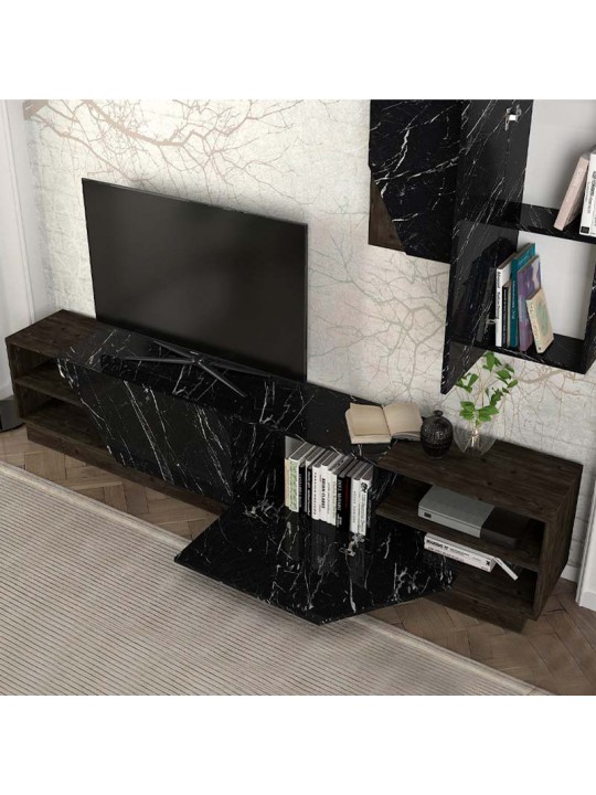 Σύνθεση τηλεόρασης River Megapap από μελαμίνη χρώμα μαύρο rebab - μαύρο εφέ μαρμάρου 240x36,6x47εκ.