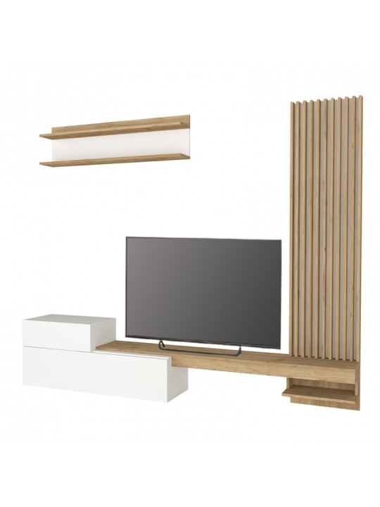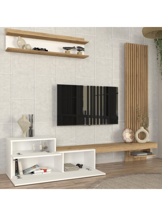 Σύνθεση τηλεόρασης Dumont Megapap χρώμα λευκό - sepet oak 240x36,8x200εκ.