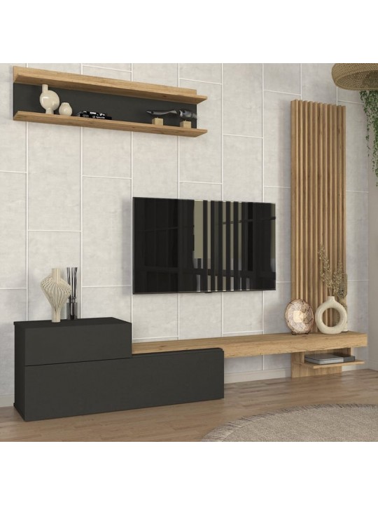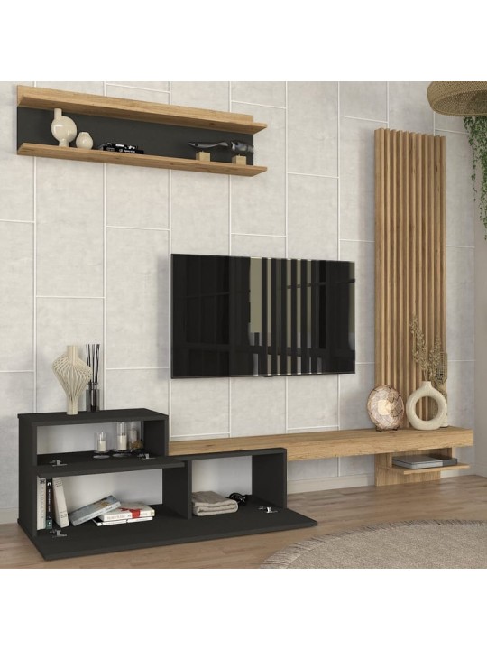 Σύνθεση τηλεόρασης Dumont Megapap χρώμα ανθρακί - sepet oak 240x36,8x200εκ.