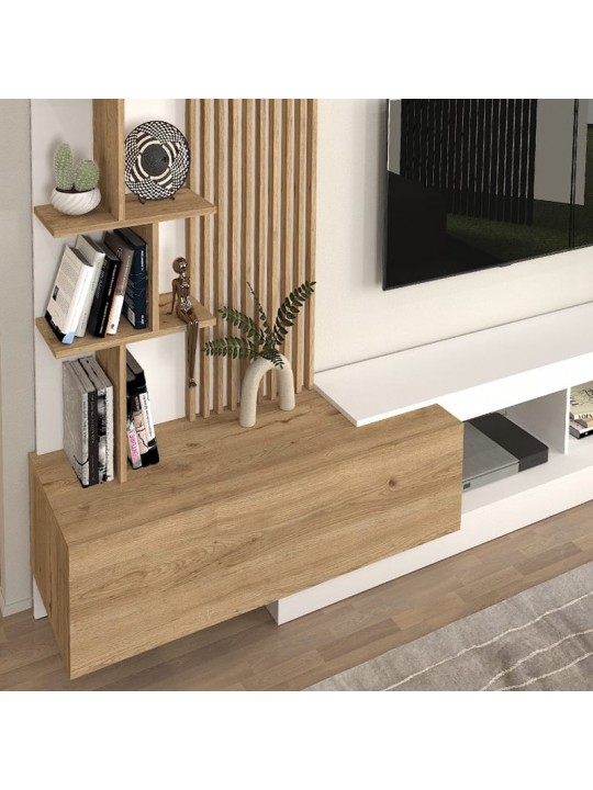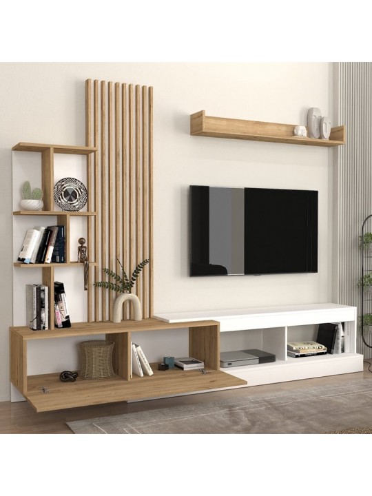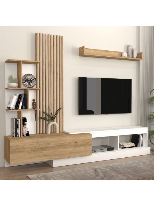 Σύνθεση τηλεόρασης Vermont Megapap χρώμα λευκό - sepet oak 240x40x192εκ.