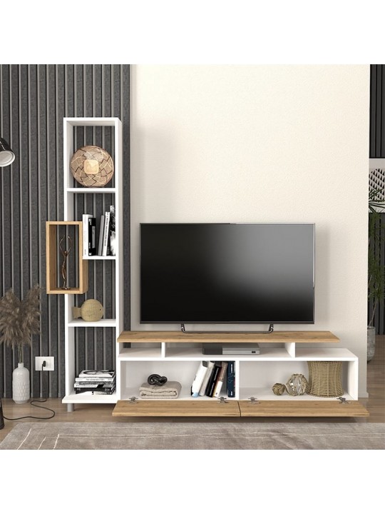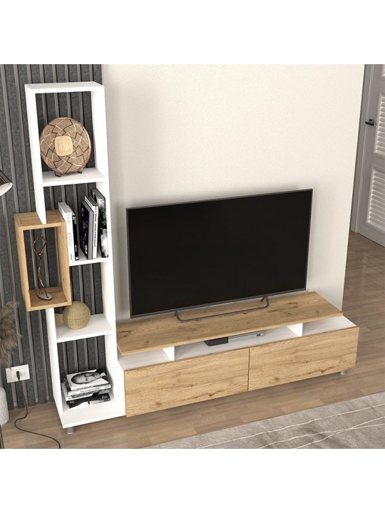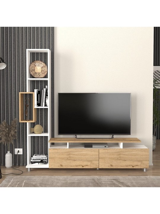 Σύνθεση τηλεόρασης Tulip Megapap χρώμα λευκό - sepet oak 160x29,5x160εκ.