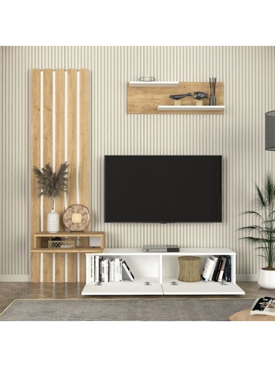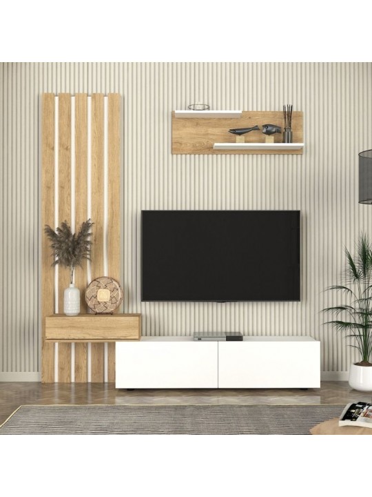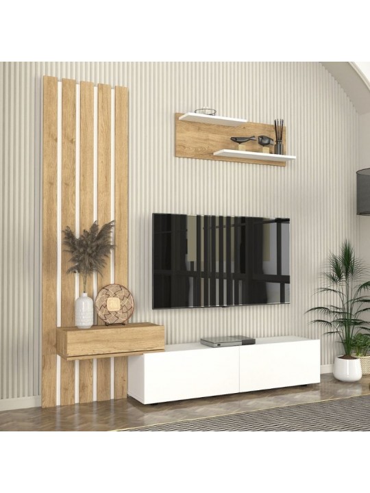 Σύνθεση τηλεόρασης Rosaline Megapap χρώμα λευκό - sepet oak 183x31,3x196,9εκ.