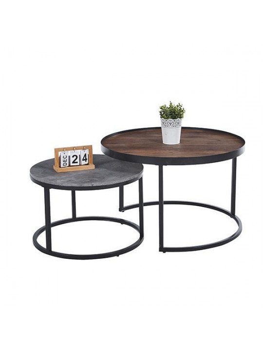 Τραπεζάκια σετ2 από μέταλλο και MDF Ø80xΥ50εκ. - Ø60xΥ40εκ. - NEXT 18883------2
