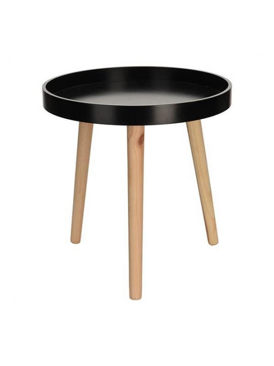Ξύλινο βοηθητικό τραπεζάκι με πόδια σε φυσικό χρώμα και επιφάνεια που μοιάζει με δίσκο σε μαύρο χρώμα. Διαστάσεις: Ø39xΥ40εκ.