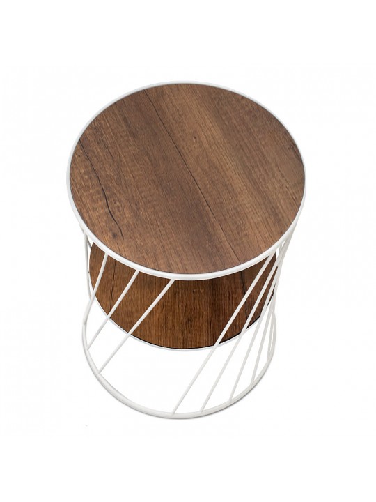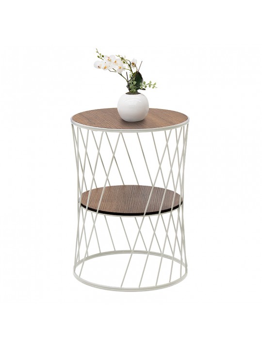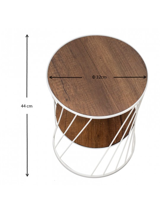 Βοηθητικό τραπεζάκι Jaspin Megapap μεταλλικό - Mdf χρώμα λευκό - καρυδί 32x32x44εκ.