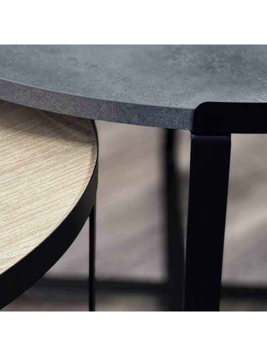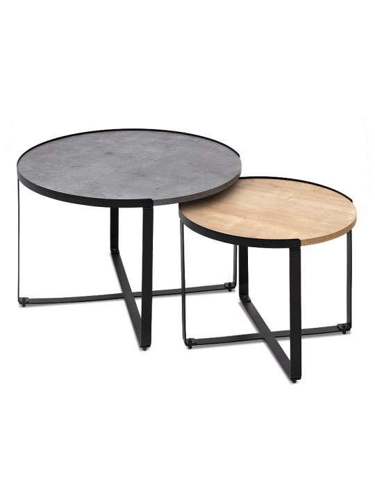 Σετ τραπεζάκια σαλονιού Davis Megapap 2τμχ. χρώμα γκρι σκυροδέματος/φυσικό οξιάς 70x69x46εκ.
