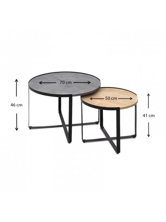 Σετ τραπεζάκια σαλονιού Davis Megapap 2τμχ. μεταλλικά - μελαμίνης γκρι σκυροδέματος/φυσικό οξιάς 70x69x46εκ.