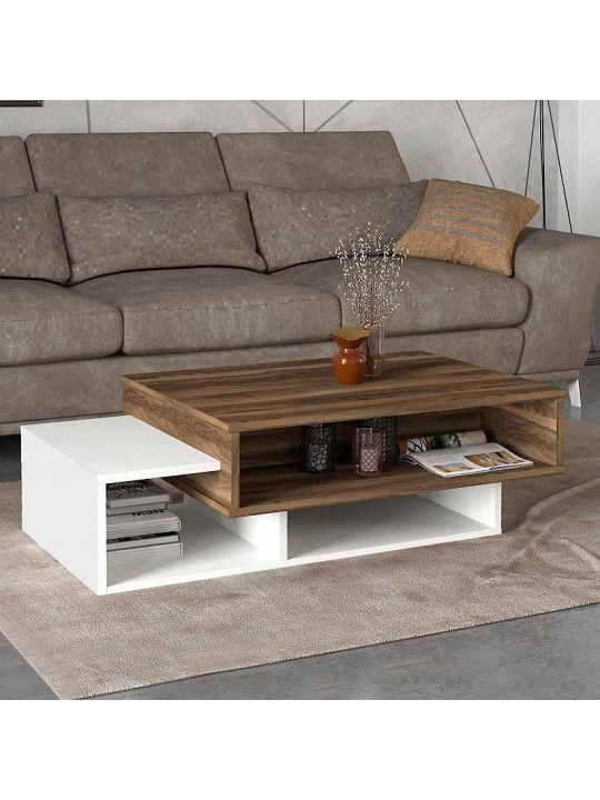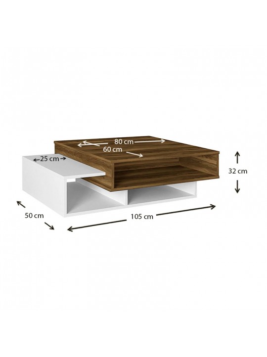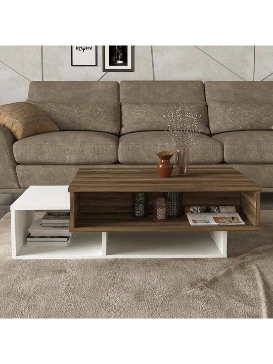Τραπεζάκι σαλονιού Tab Megapap από μελαμίνη χρώμα λευκό - καρυδί 105x60x32εκ.