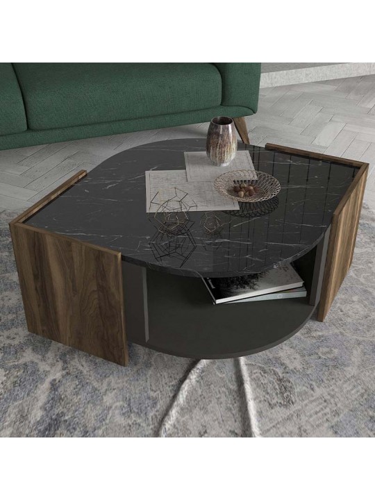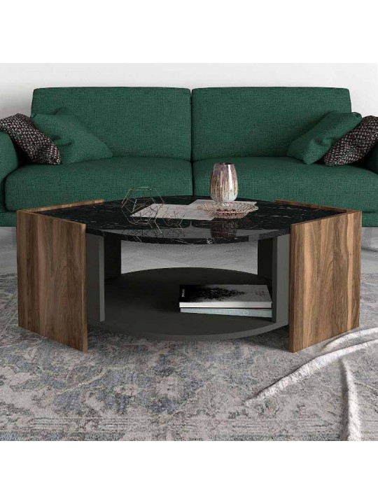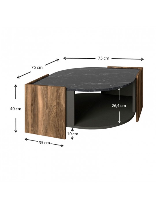Τραπεζάκι σαλονιού Marbel Megapap από μελαμίνη χρώμα καρυδί - μαύρο εφέ μαρμάρου 75x75x40εκ.