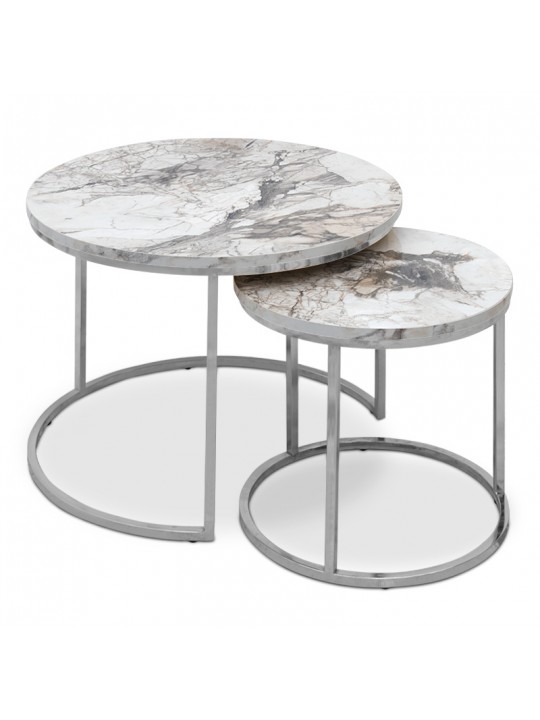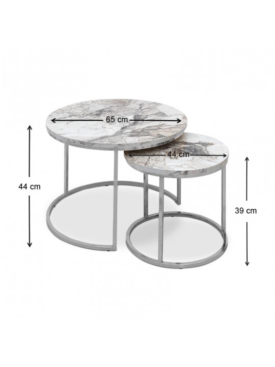 Τραπεζάκια σαλονιού Gary Megapap Mdf - μεταλλικό χρώμα μπεζ εφέ μαρμάρου - χρωμίου 65x65x44εκ.