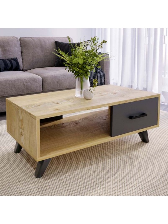 Τραπεζάκι σαλονιού Gilbert Megapap από μελαμίνη χρώμα sapphire oak - ανθρακί 90x45x35εκ.