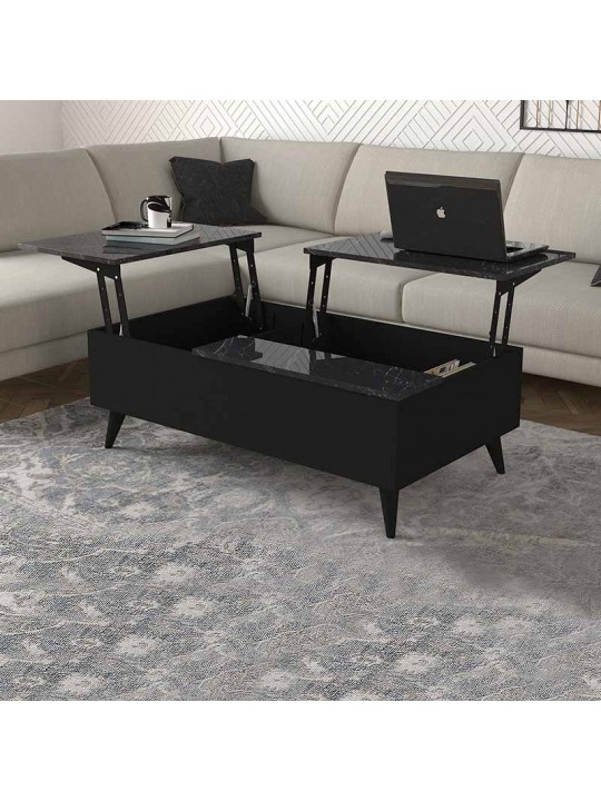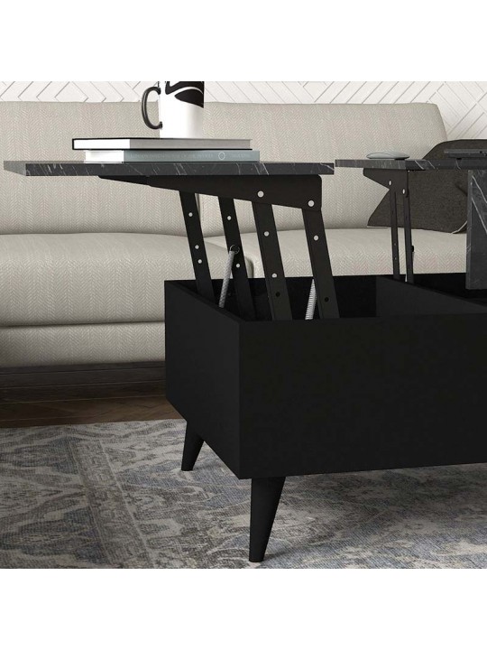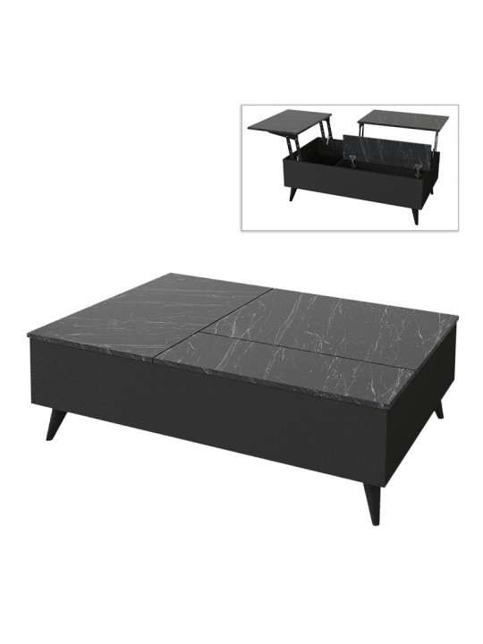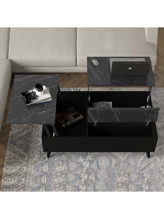 Τραπεζάκι σαλονιού Roy Megapap με σερβιτόρο από μελαμίνη χρώμα μαύρο - εφέ μαρμάρου 121x69x40εκ.