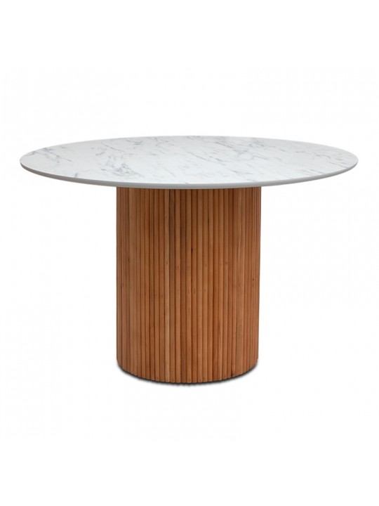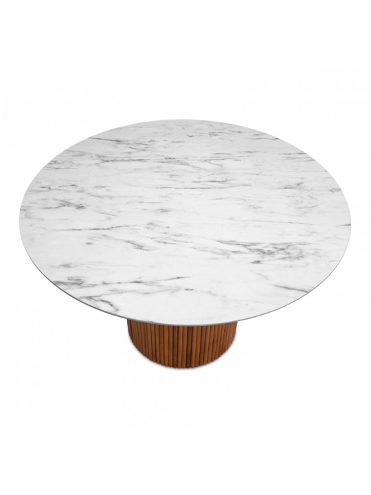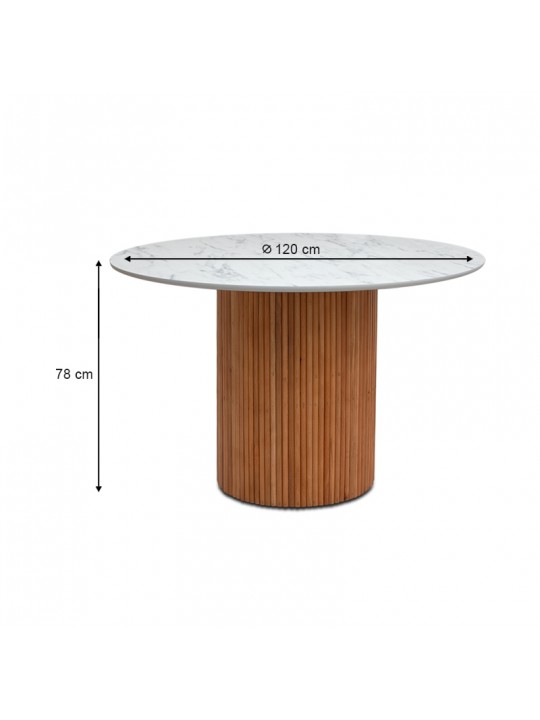 Τραπέζι Borno Megapap χρώμα φυσικό - λευκό εφέ μαρμάρου Ø120x78 εκ.
