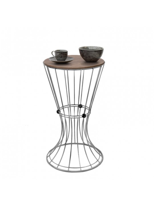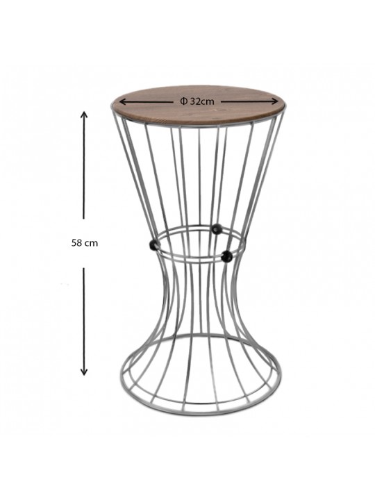 Βοηθητικό τραπεζάκι Girene Megapap μεταλλικό - Mdf χρώμα ασημί - καρυδί 32x32x58εκ.
