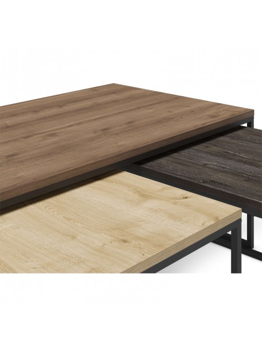 Τραπεζάκι σαλονιού σετ 3 τμχ. Camelia Megapap χρώμα ανοιχτό καρυδί - sapphire oak - καφέ 110x60x41,8εκ.