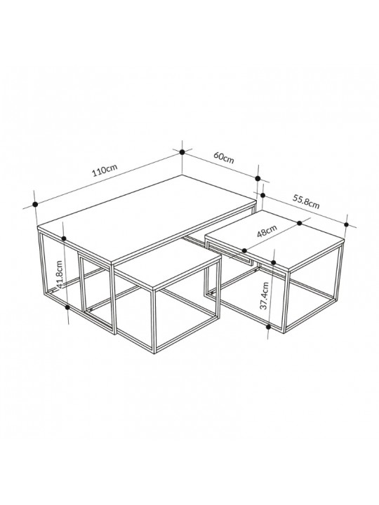 - Διαστάσεις βοηθητικών τραπεζιών: Μήκος 48 x Βάθος 55,8 x Ύψος 37,4 εκ.
