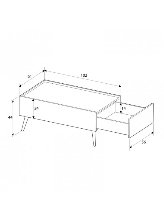 - Διαστάσεις: Μήκος 102 x Βάθος 61 x Ύψος 44 εκ.