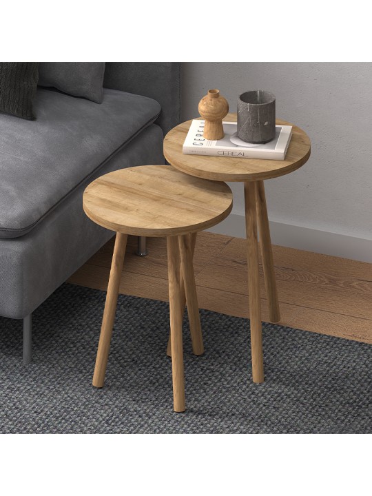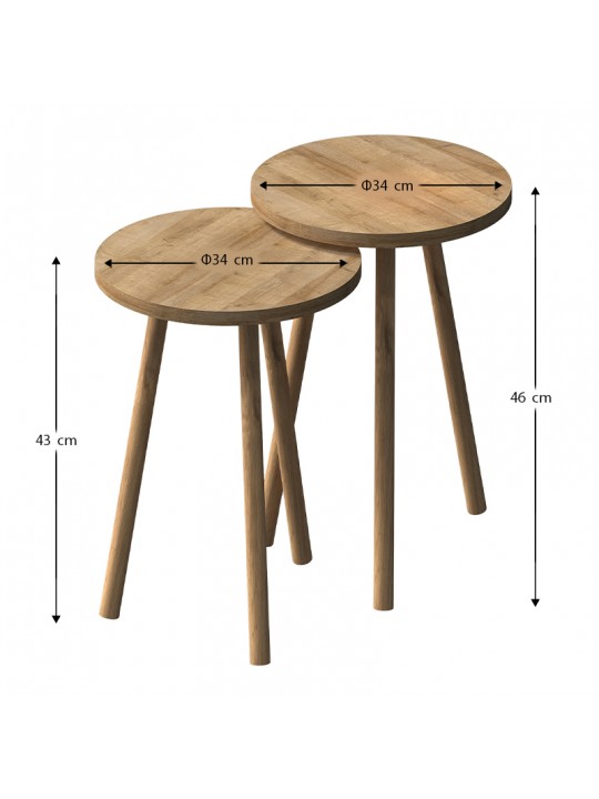 Τραπεζάκια βοηθητικά σετ 2 τμχ Roma Megapap χρώμα oak Ø34x46εκ.